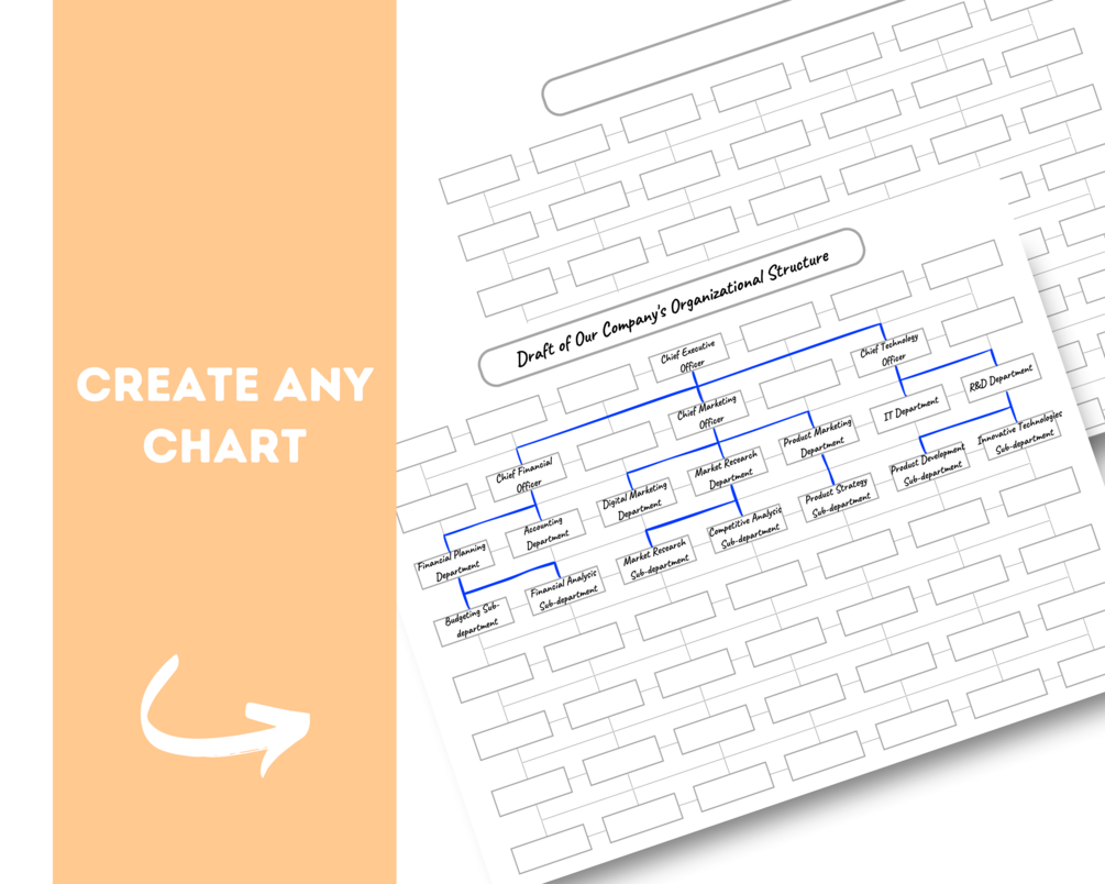 These printable templates offer you the flexibility to create task plans, action plans, mind maps, organizational charts, and describe processes from start to finish.
